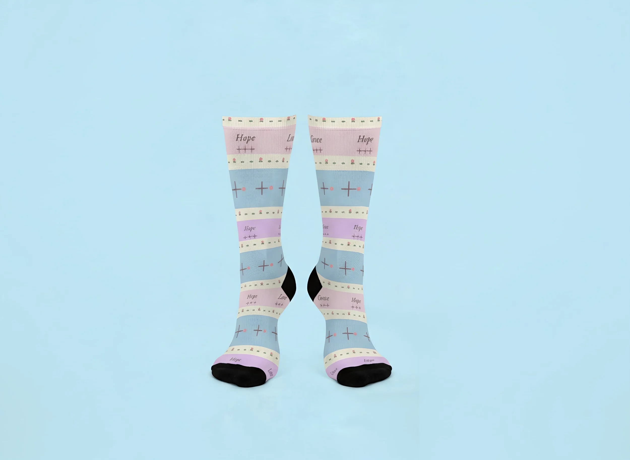 Shop Be Still Psalm 46:10 Cushioned Crew Socks $17.99 "Be Strong / Fear Not" Cushioned Crew Socks $17.99 Faith & Hope Patterned Crew Socks — Cushioned Crew Socks $17.99 Easter Pastel Cross & Dove Cushioned Crew Socks $17.99 Faith & Hope Crew Socks — Cushioned Crew Socks $17.99 Hope & Love Cushioned Crew Socks $17.99 God’s Plan Cushioned Crew Socks $17.99 Prayer Warrior Cushioned Crew Socks $17.99 Made New Cushioned Crew Socks $18.63 Faith Symbols Cushioned Crew Socks $17.99 Made New Cushioned Crew Socks - Autumn Leaves Pattern $17.99 Faith, Hope & Love Cushioned Crew Socks $17.99
